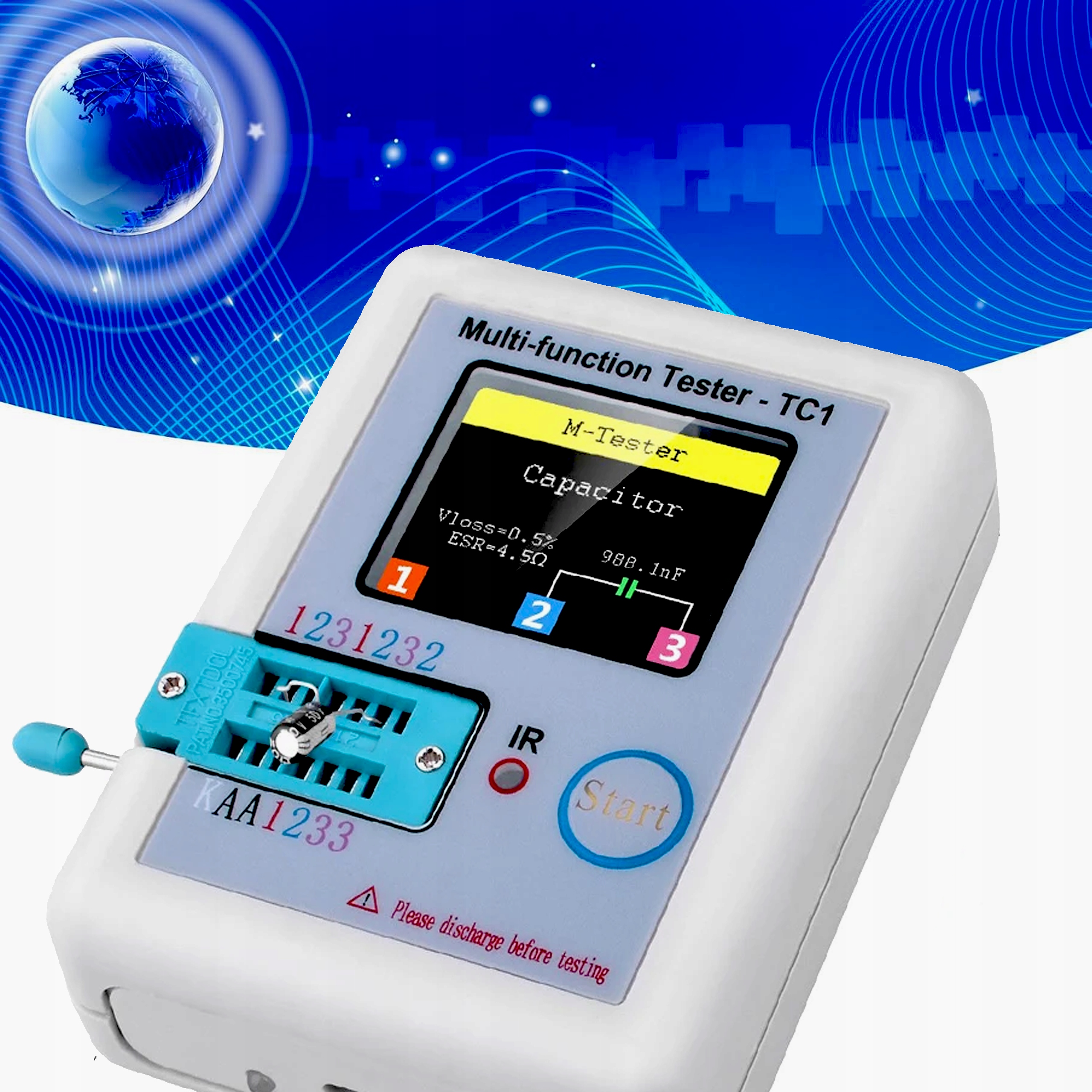 LCR-T7 – це компактний і простий у використанні тестер електронних компонентів, який дозволяє перевіряти транзистори , котушки, діоди та конденсатори. Це ідеальний інструмент для любителів, інженерів-електронників і студентів, які хочуть швидко й точно діагностувати проблеми електронної системи.