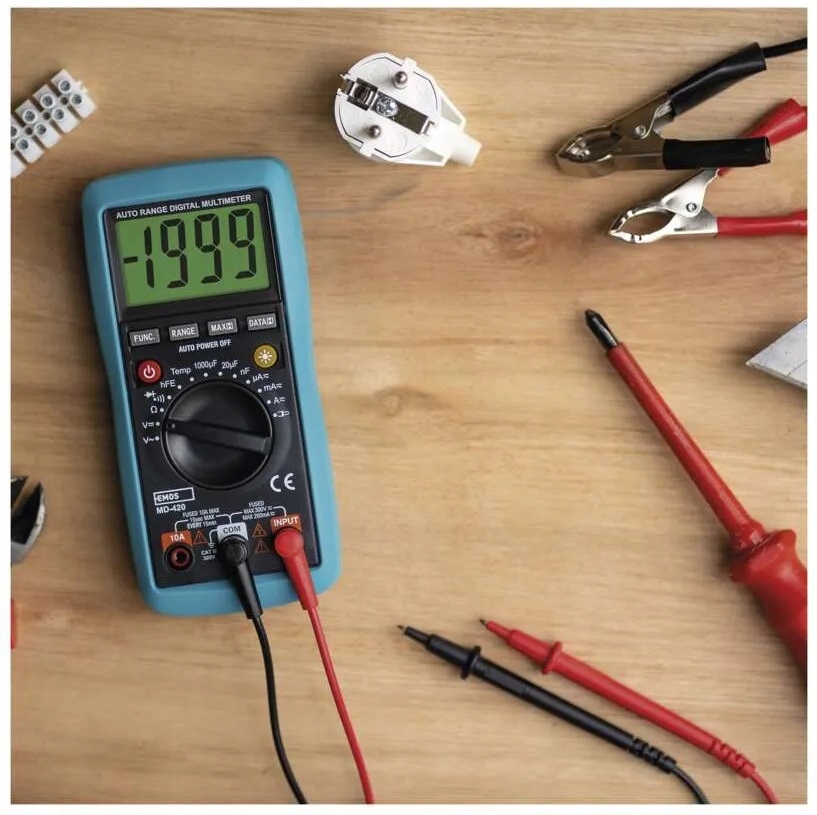 Професіонали оцінять здатність MD-420 до вимірювання до 1000 AC/ DC з операційними кадерами. Приємно проводити час з вдосконаленими функціями, такими як тестування діодів або транзисторів. Навіть у умовах погане освітлення не є проблемою. Порівняно з найдешевшими хобі-інструментами, мультиметр MD-420 має автоматичне регулювання діапазону . B> Можливість вимірювання температури в діапазоні від -20 ° C до +1 000 ° C. Захід . K -тип зонд, замок батареї та три батареї AAA 1,5 В, завдяки якому інструмент готовий до негайного використання.