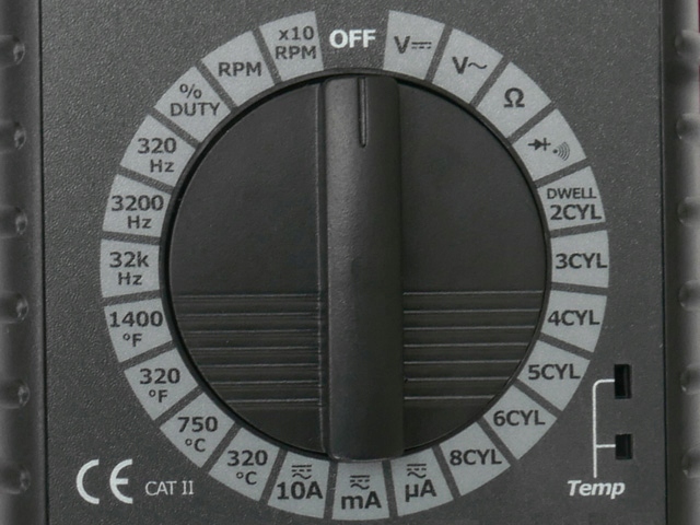 Особливістю лічильника є індуктивне вимірювання обертів двигуна за допомогою вимірювального щупа. Зонд у формі кліпси має регульовану чутливість і розміщується на високовольтному кабелі біля свічки запалювання.