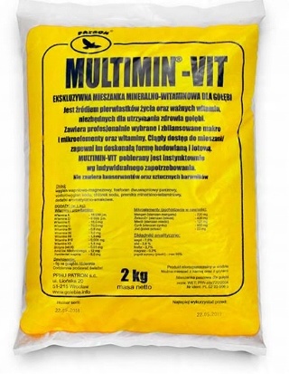 MULTIMIN-VIT meal - це суміш, дуже багата мінералами, яка є надзвичайно корисною для голубів для їх правильного розвитку та збереження життєвих сил. Правильно збалансовані макро- та мікроелементи під назвою «мінерали життя» збагачені комплексом вітамінів, які сприяють засвоєнню інгредієнтів мінеральної їжі та захищають від гострого авітамінозу.