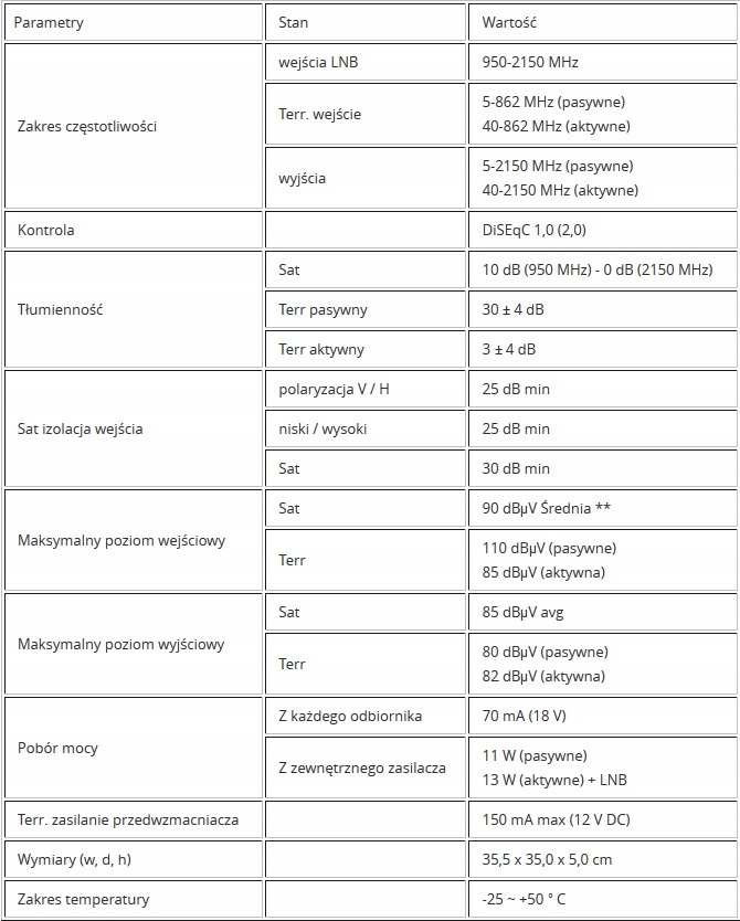 - підтримка LNB Quattro та LNB Quad (залежно від моделі)