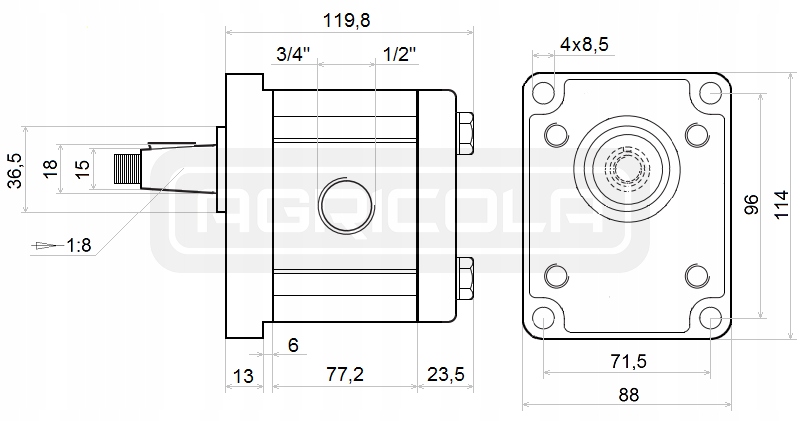 - Максимальний тиск у взаємодії з редуктором: до 25 МПа