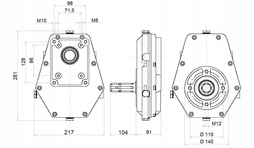 Коробка передач ідеальна для водіння гідронасоси групи 2 (20) і 3 (30) з фланцем європейського типу. Призначений для роботи в лісогосподарських і будівельних машинах і багатьох тракторах, включаючи C-330, C-360, C-385, ZETOR, MF та інші з виходом ВВП.