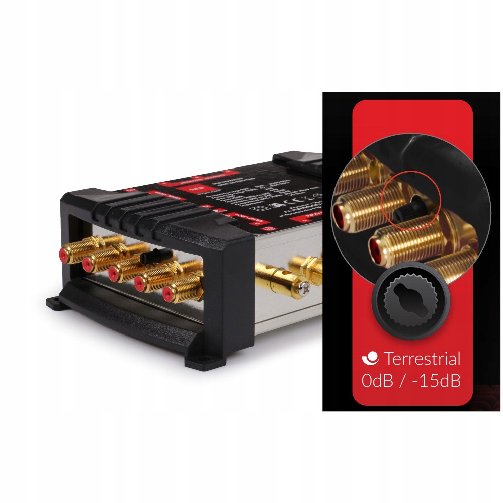 Позолочені розетки значно зменшують втрати сигналу під час з’єднання кабелю антени та запобігають окисленню. Мультисвіч автоматично розпізнає тип сигналу, який буде передаватися на тюнери. Установка повинна включати підключення мультисвіча до супутникової антени діаметром не менше 0,8 м і конвертеру Quattro або Quad і антени ефірного телебачення. Супутниковий і ефірний сигнали, що надходять від мультисвіча, розділяються за допомогою кінцевих абонентських розеток. Мультивич живиться від зовнішнього джерела живлення, що усуває явище підвищеної робочої температури, яка є частою причиною пошкодження пристрою.