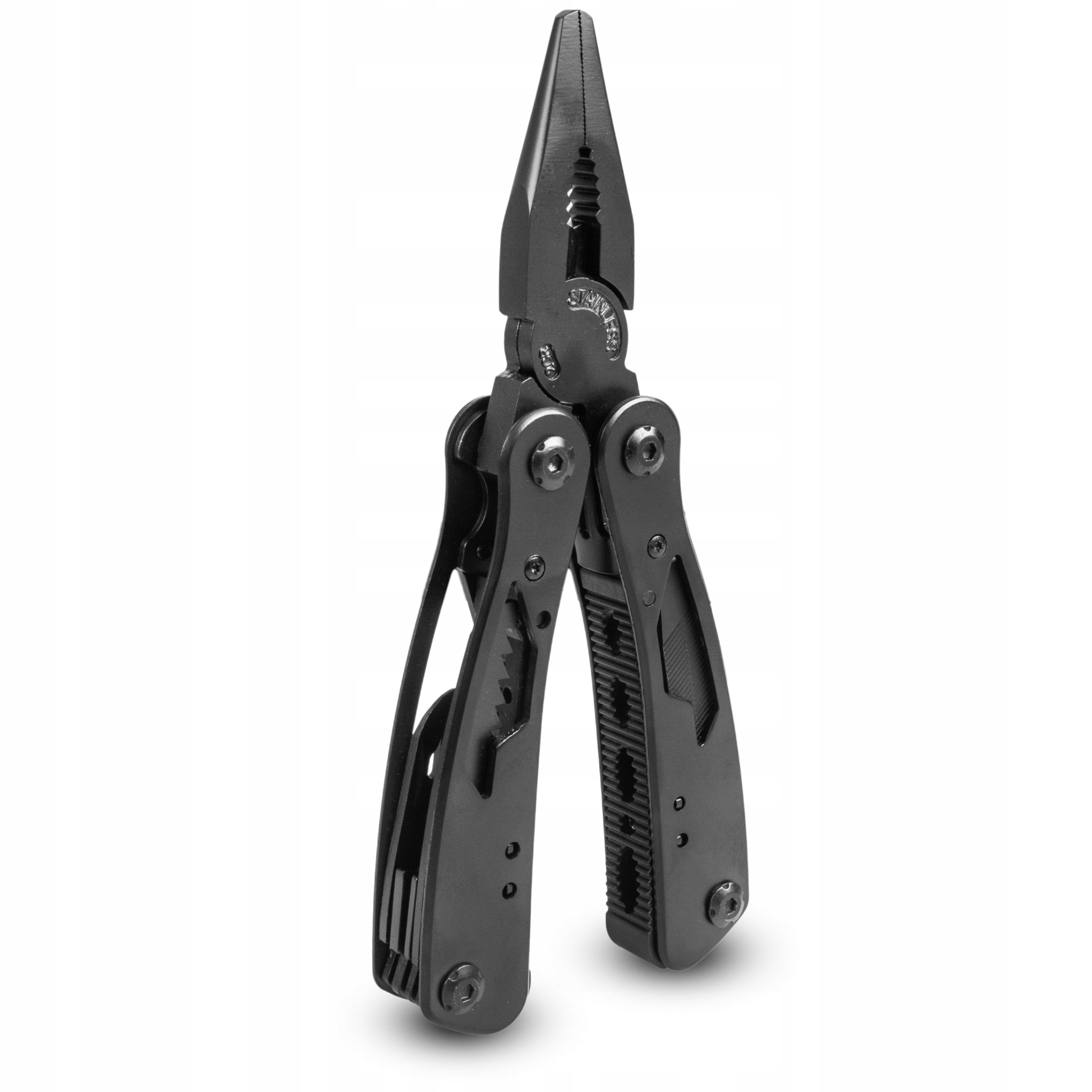 Конструкція містить плоскогубці, різак для дроту, ніж, відкривачка для пляшок, плоску викрутку, хрестоподібну викрутку, відкривач, ключі та інші, які видно на фотографіях, – загалом 26 різних функцій