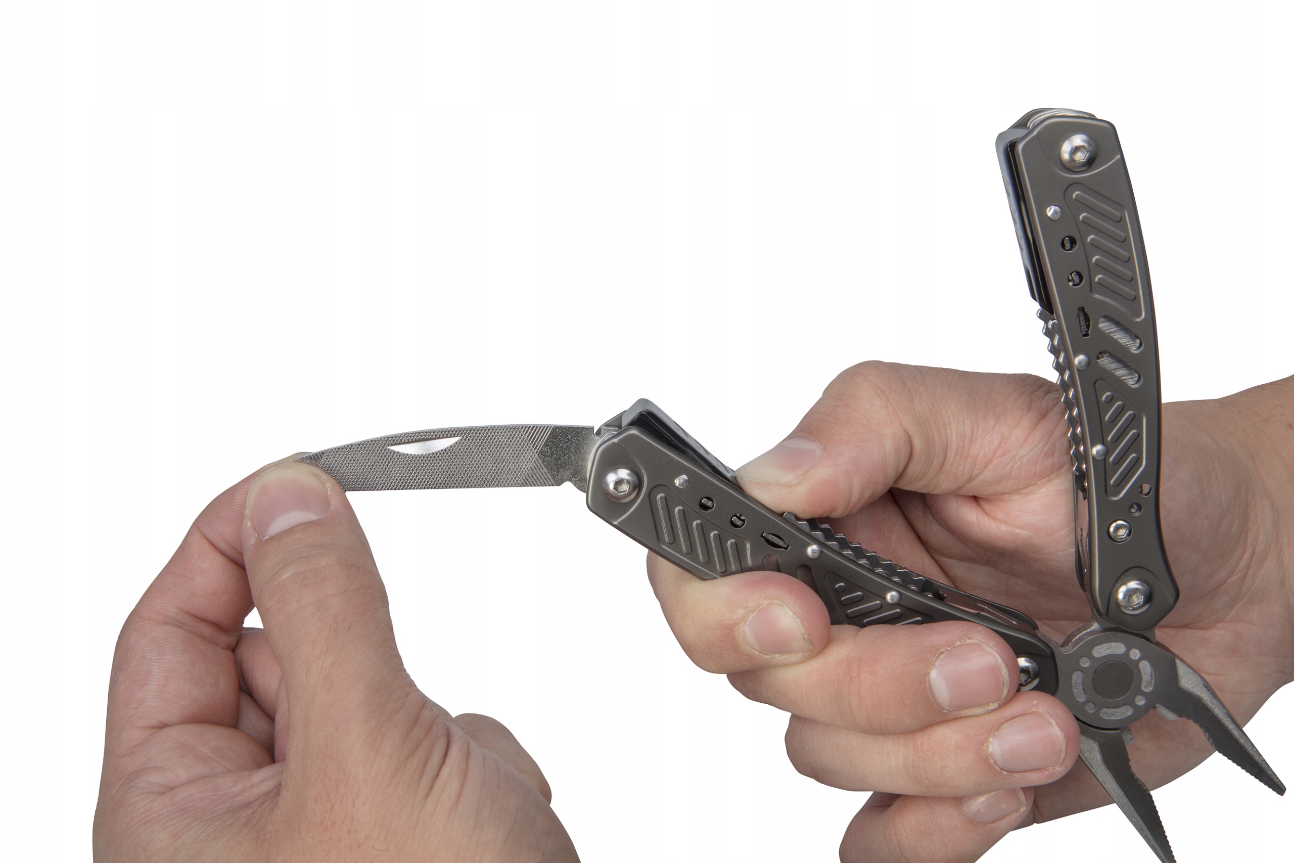 Компактна та практична ідеальна мультинаціональна воля, де вам потрібно затягнути, розрізати, відкрити, і у вас немає цілого семінару з собою. Це буде працювати на роботі, подорожувати, на купі, рибі, під час пішоходів та велосипедних блукання та ндуму, завжди варто їх з вами. Інструмент має високоякісну металеву структуру. Включає кришку з ременем петлі.