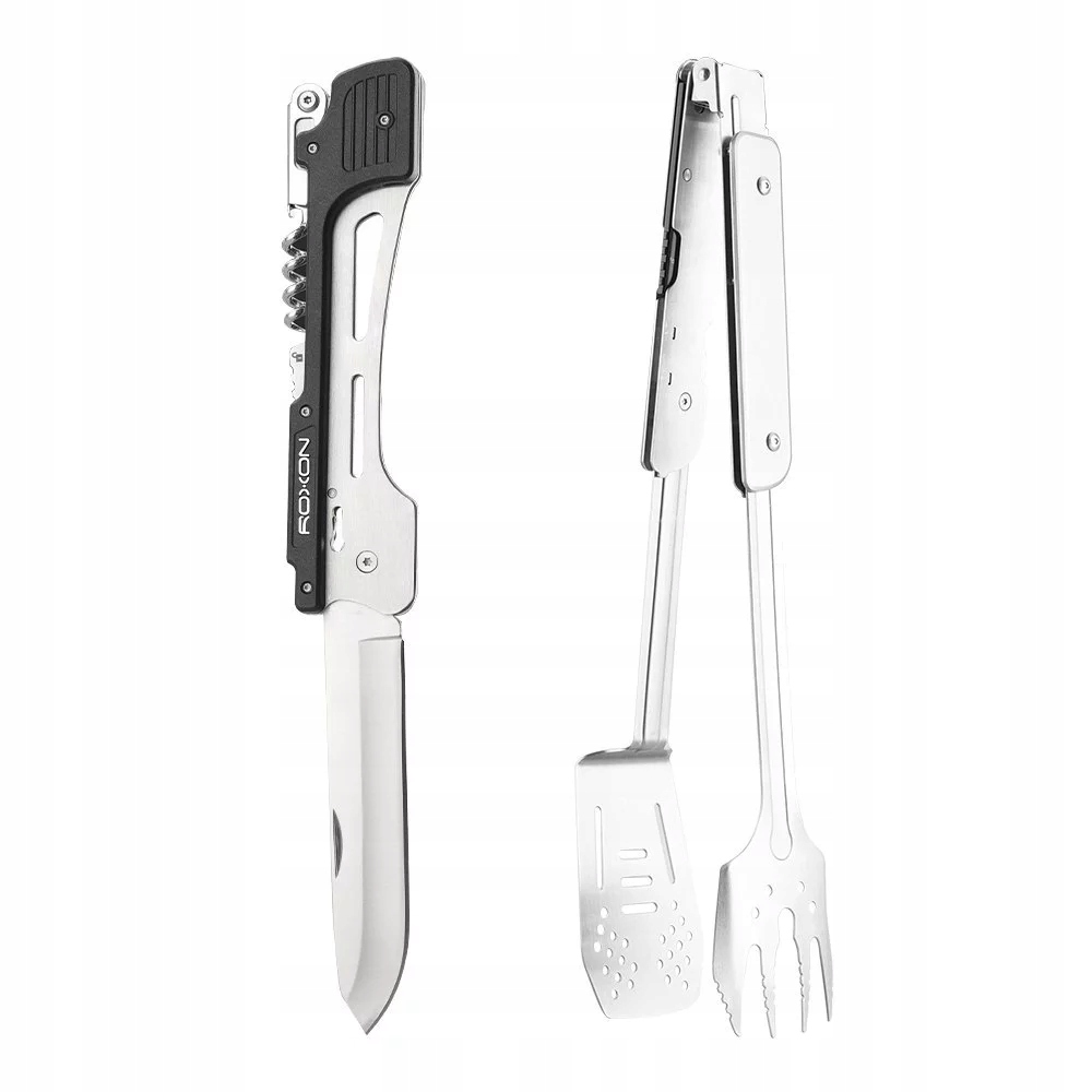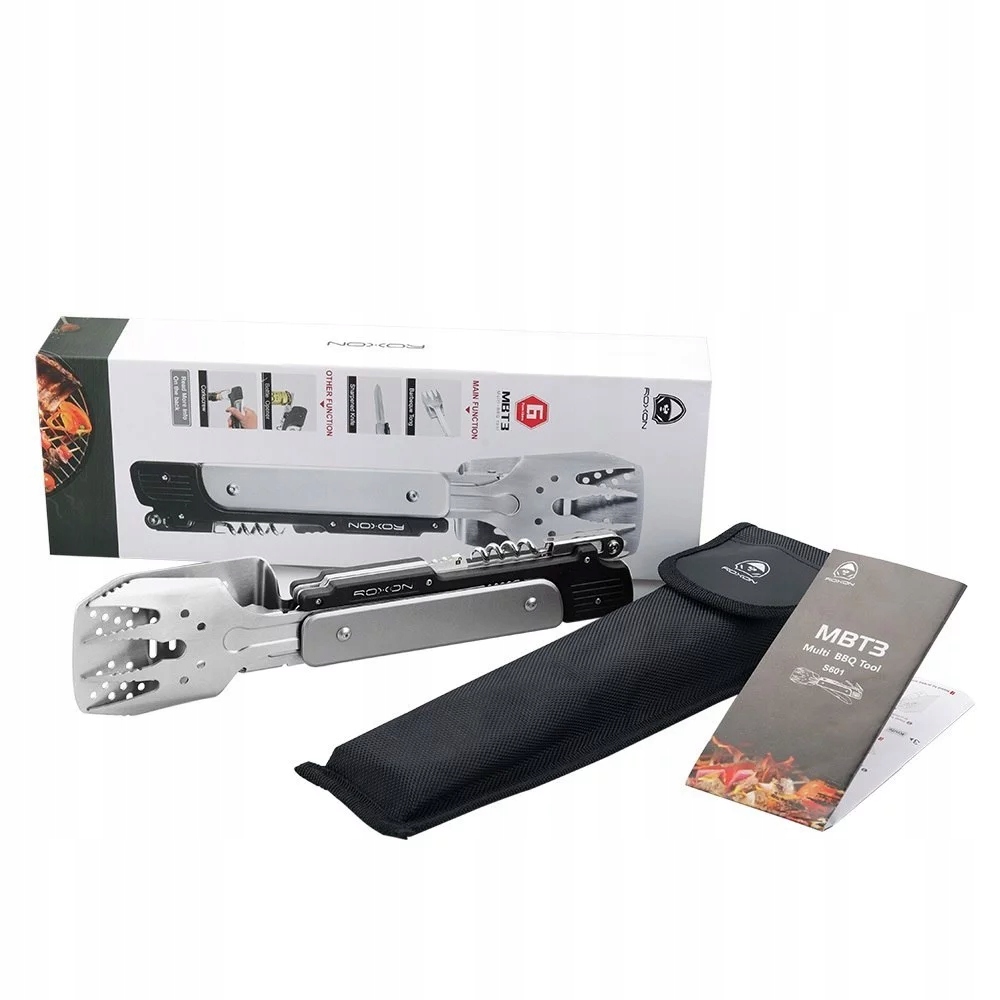 Багатофункціональний інструмент для гриля ROXON 6-в-1 – це знімний і складаний набір інструментів для гриля, який складається з лопатки, виделки, щипців для гриля, відкривачки для пляшок.