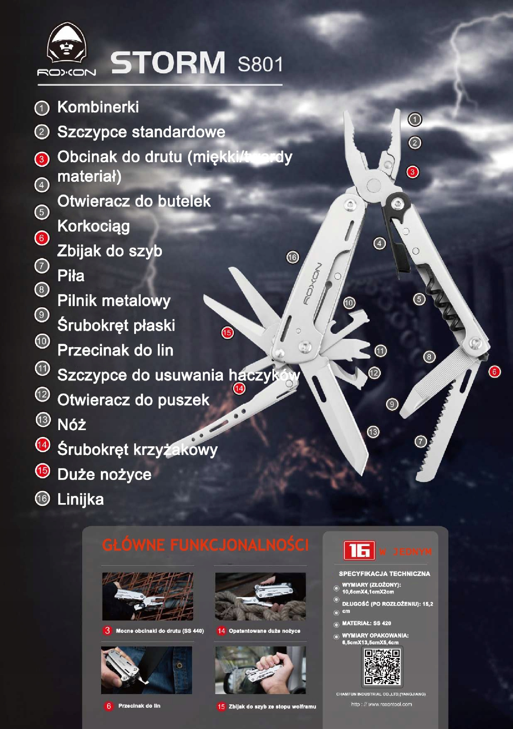 Інноваційний багатофункціональний інструмент ROXON STORM S801S multi-tool - компактний інструмент із багатьма застосуваннями (16 різних, ідеально підходить для дому, туризму, кемпінгу, виживання, риболовлі та багатьох інших видів діяльності).