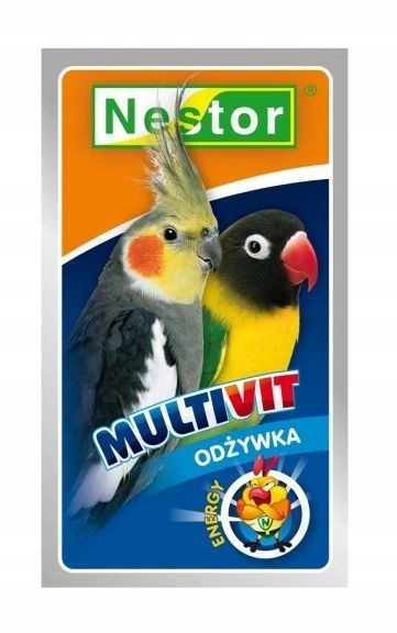 Мультивіт від Нестора, кондиціонер для середніх папуг і птахів. Кондиціонер для папуг середнього розміру повинен стати постійною частиною раціону вашого вихованця. Всередині упаковки міститься суміш спеціально відібраних зерен в оточенні мінерально-вітамінного концентрату. Набір мінералів і вітамінів, що міститься в концентраті, сприяє правильній роботі організму папуги, зміцнює його стан, запобігає захворюванням і покращує самопочуття.