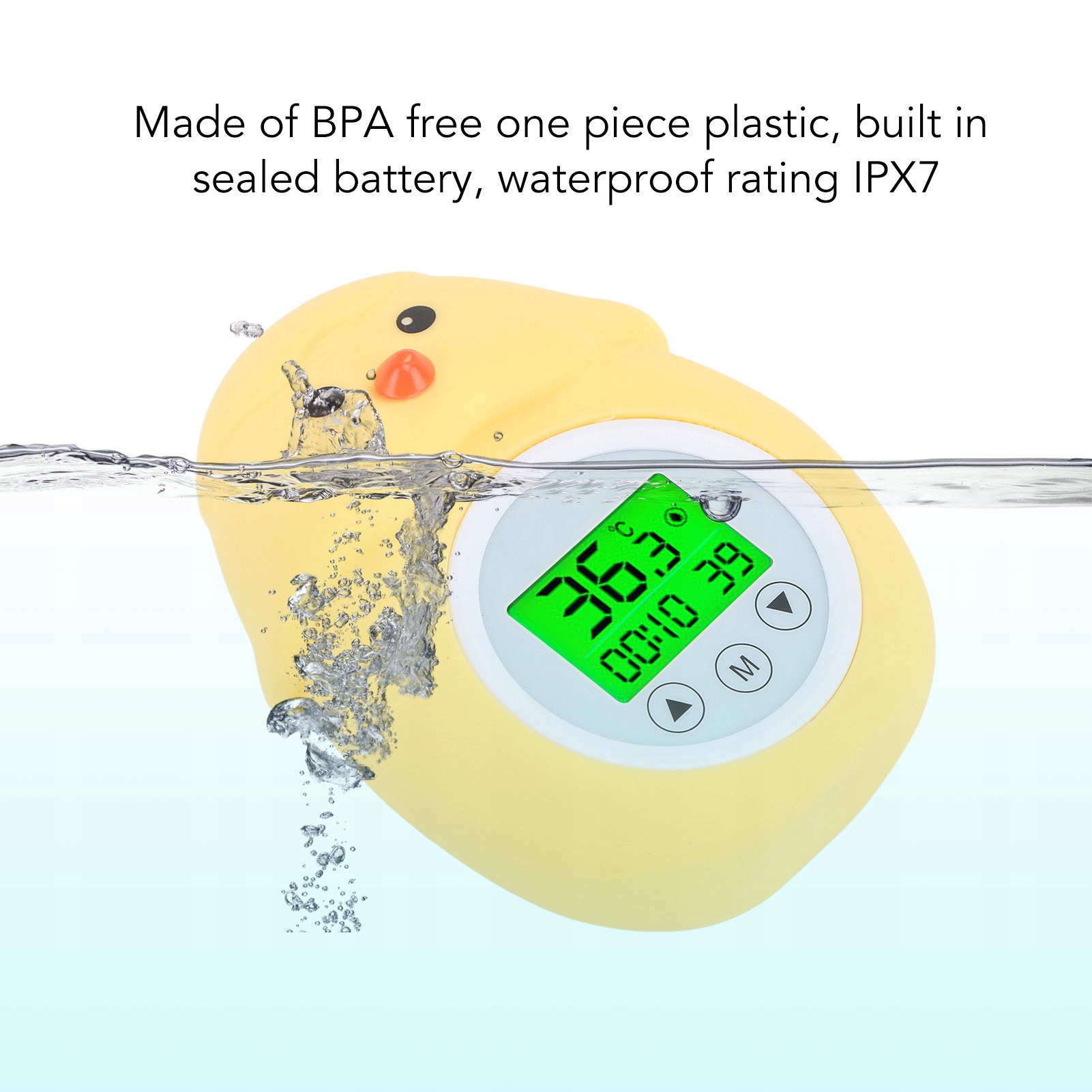 1. [Безпечний матеріал]: мультяшний термометр виготовлений із пластику, що забезпечує безпеку вашої дитини, має герметичний акумулятор і рейтинг водонепроникності IPX7.