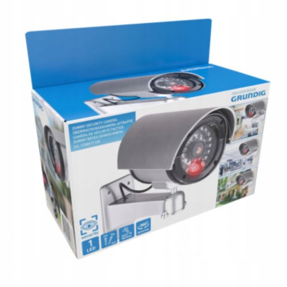 Підставна камера Grundig дуже нагадує систему відеоспостереження, яка допоможе захистити ваше майно від злодіїв. Високоякісні матеріали, з яких виготовлена манекен-камера, дозволяють використовувати її як у приміщенні, так і на вулиці. Миготливий червоний світлодіод створює враження цілодобового моніторингу. Завдяки розмірам традиційної камери та імітації вбудованих інфрачервоних діодів її не впізнати стороння людина.