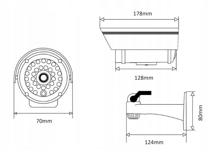 - Розміри монтажної основи (ширина / висота / глибина [мм]]): 80 / 80 /124