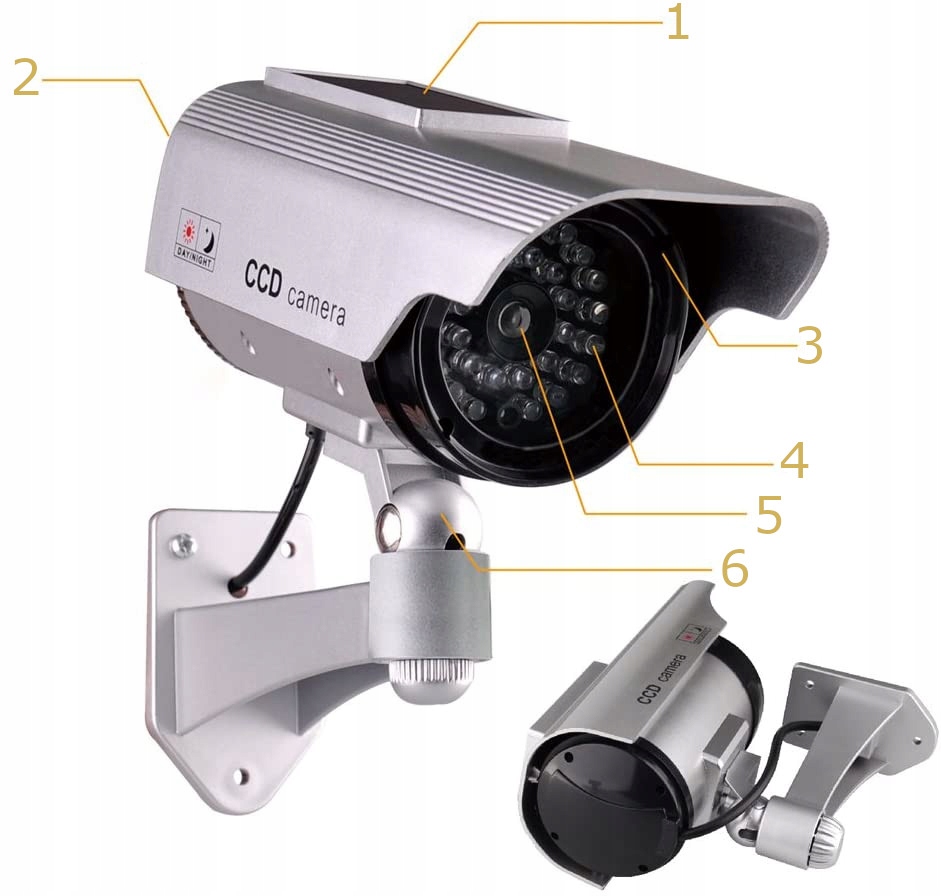 - A пристрій із реальним виглядом камери відеоспостереження з миготливим ІЧ-світлодіодом, призначений для встановлення як на вулиці, так і всередині приміщень.