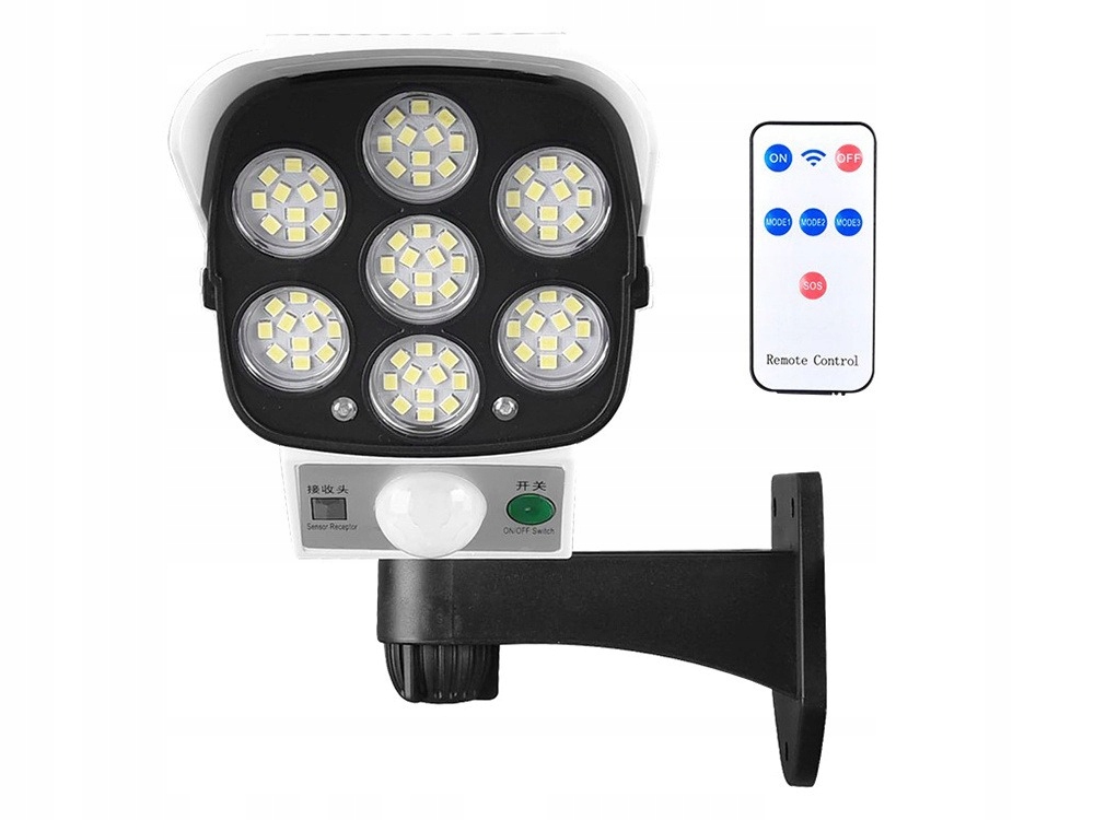 Високоякісний манекен камери - це пристрій, що живиться від сонячної панелі, що гарантує освітлення без додаткового джерела живлення. Він оснащений дуже яскравою панеллю 77 COB LED з сильним світловим потоком.