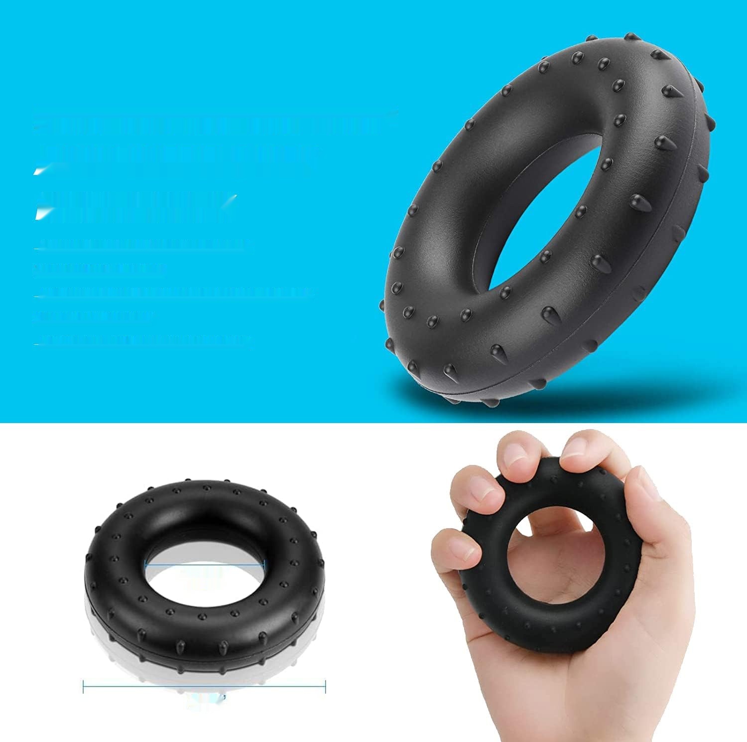 - Кільце для зміцнення рук: Виготовлений з високоякісного силікону, дозволяє інтенсивні вправи на захоплення та покращити кровообіг, зменшуючи стрес та біль у суглобах.