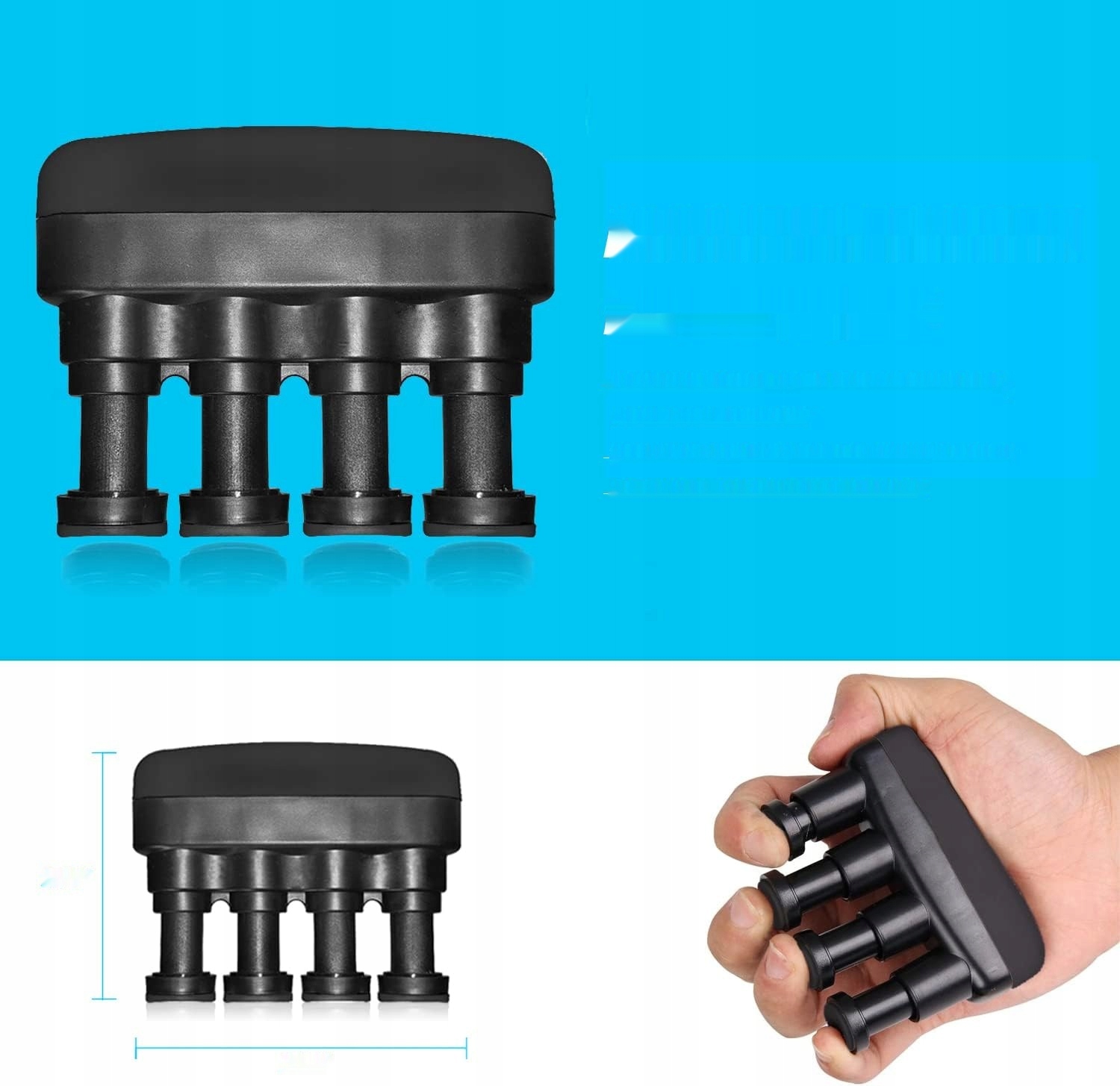 - Вправи на пальці: Додаткове обладнання, виготовлене з гнучкого силікону, що розвиває індивідуальну силу та гнучкість пальців.
