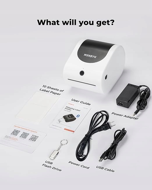 4 Революційний дизайн підтримує як вставлення паперу в рулону, так і вставку складеного паперу ззаду, не використовуючи додаткову ручку. Підтримує мобільні пристрої та комп’ютери: принтер для мітки Bluetooth може бути підключений до комп'ютерів з Windows та Mac через USB. Він також підтримує підключення Bluetooth з iOS, Android та планшетами. Просто завантажте програму "Munbyn Print", щоб ефективно та легко друкувати етикетки. Швидкий друк: 4х6 мітка принтер підтримує мітки шириною від 40 до 110 мм. Завдяки розширеній термічній технології та друкованій головці ROHM, принтер досягає швидкого друку зі швидкістю 150 мм в секунду і друкує до 60 мітків A6 в 4 х 6 дюймів на хвилину. Широка сумісність: принтер теплової етикетки можна легко інтегрувати з USPS, UPS, eBay, Etsy Amazon, PayPal та Poshmark, що робить його ідеальним для продажів в Інтернеті та доставці пакетів. (USB Pendrive у наборі; просто підключіть його до комп'ютера, щоб завантажити контролер та почати друк).