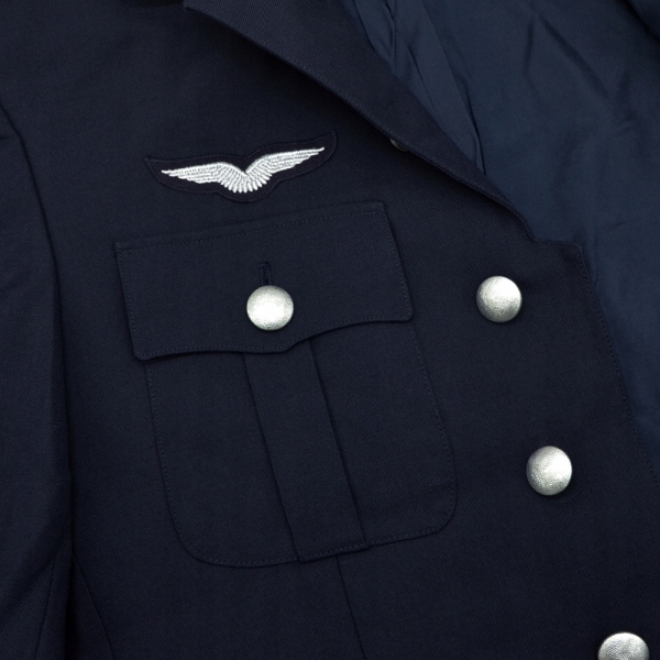 Оригінальна формена куртка з ресурсів німецької армії - Бундесверу темно-синього кольору - Люфтваффе. Має 4 зовнішні кишені - 2 на рівні грудей і 2 на рівні талії, всі застібаються на кнопки. Крім того, має дві внутрішні кишені. Виготовлений з високоякісного матеріалу, який складається з 65% вовни, 35% поліестеру, з підкладкою всередині.