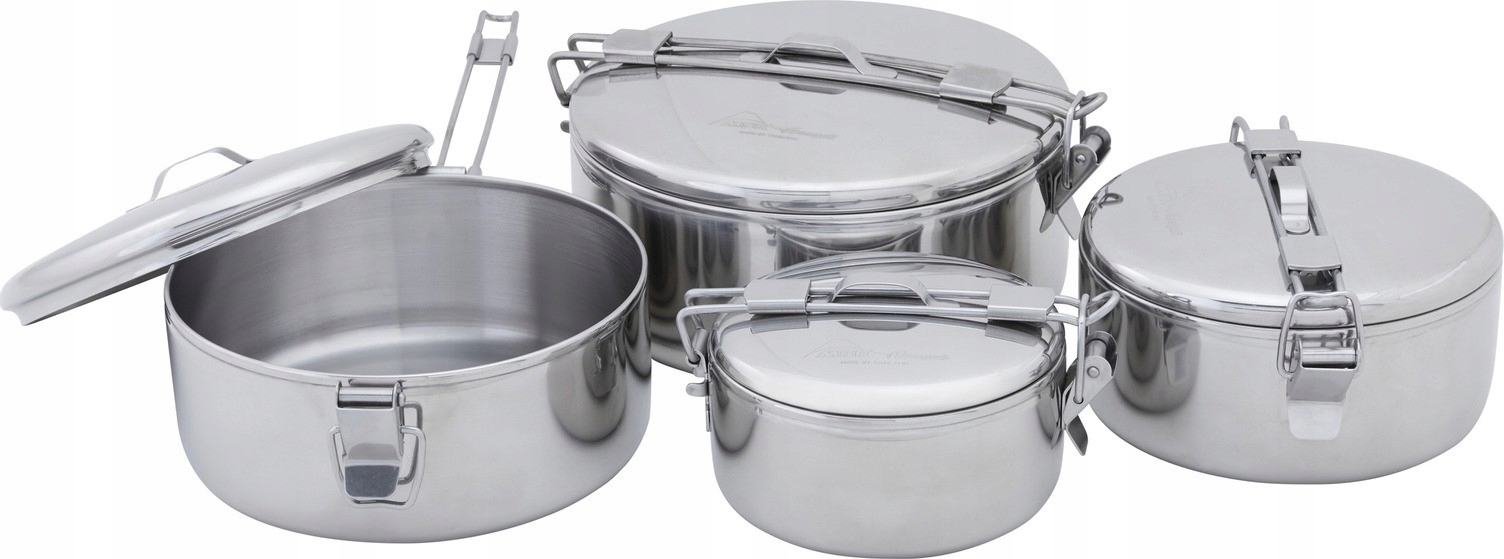 Світло, функціональні, сталеві повідомлення в різних ємності, з кришкою та ручкою. Зауважте, тетри не сумісні між собою.