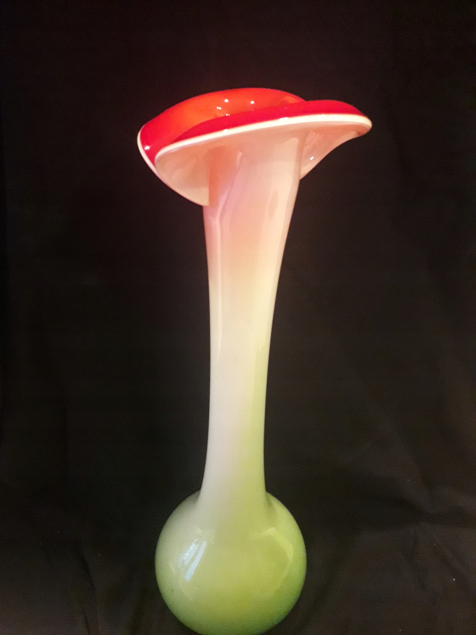 MURANO GLASS VASE GREEN RED 70s,ITALY