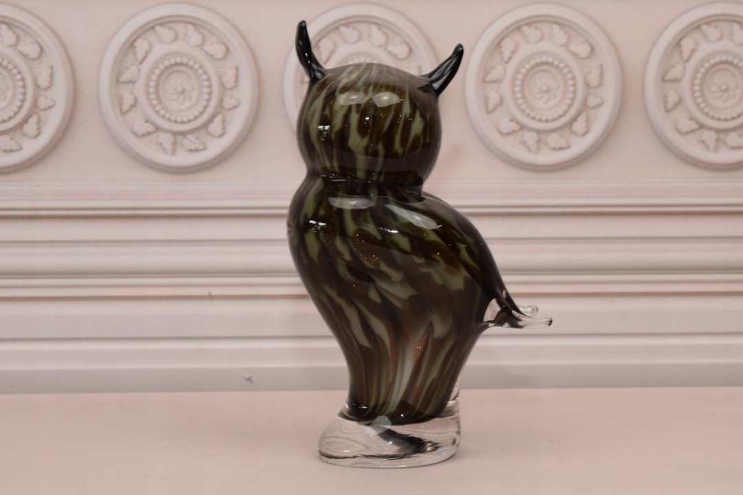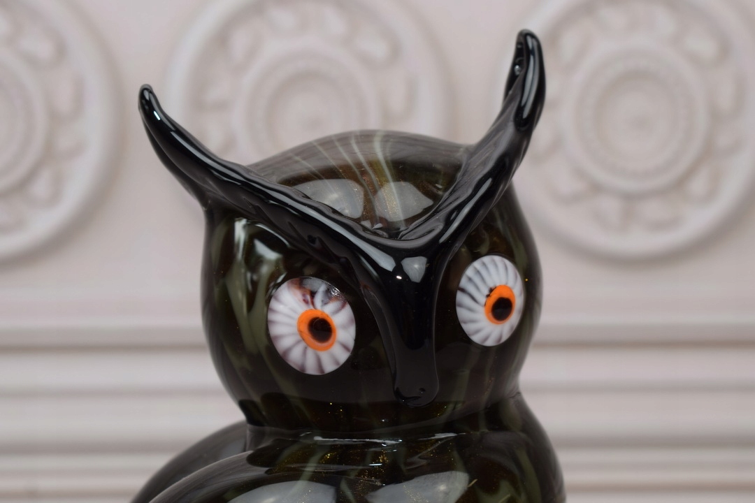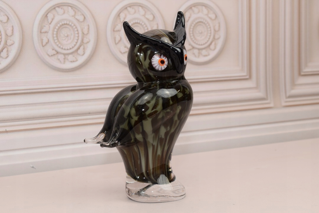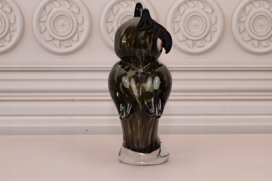 Муранське скло - Птах чорна сова - Фігурна скульптура - Прикраса