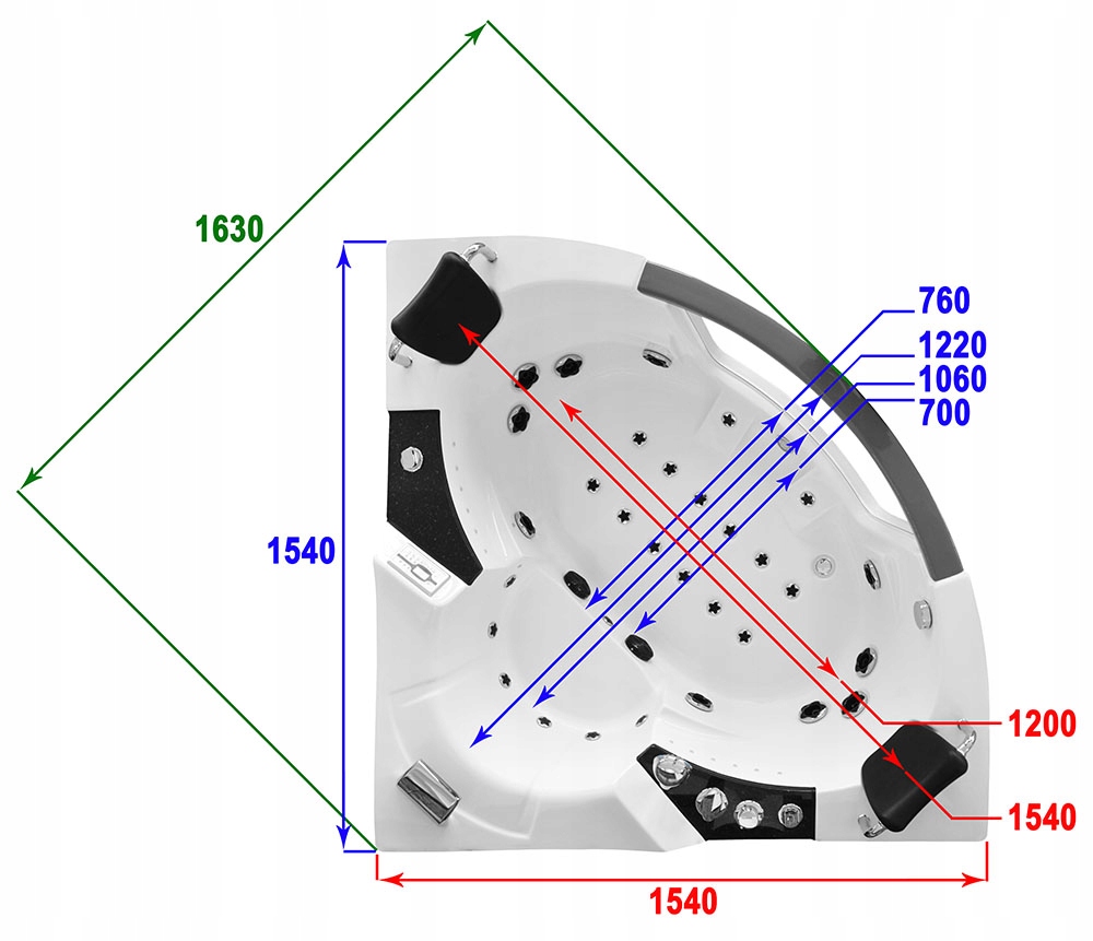 МОДЕЛЬ: Ванна PREMIUM з гідромасажем MUS-1060