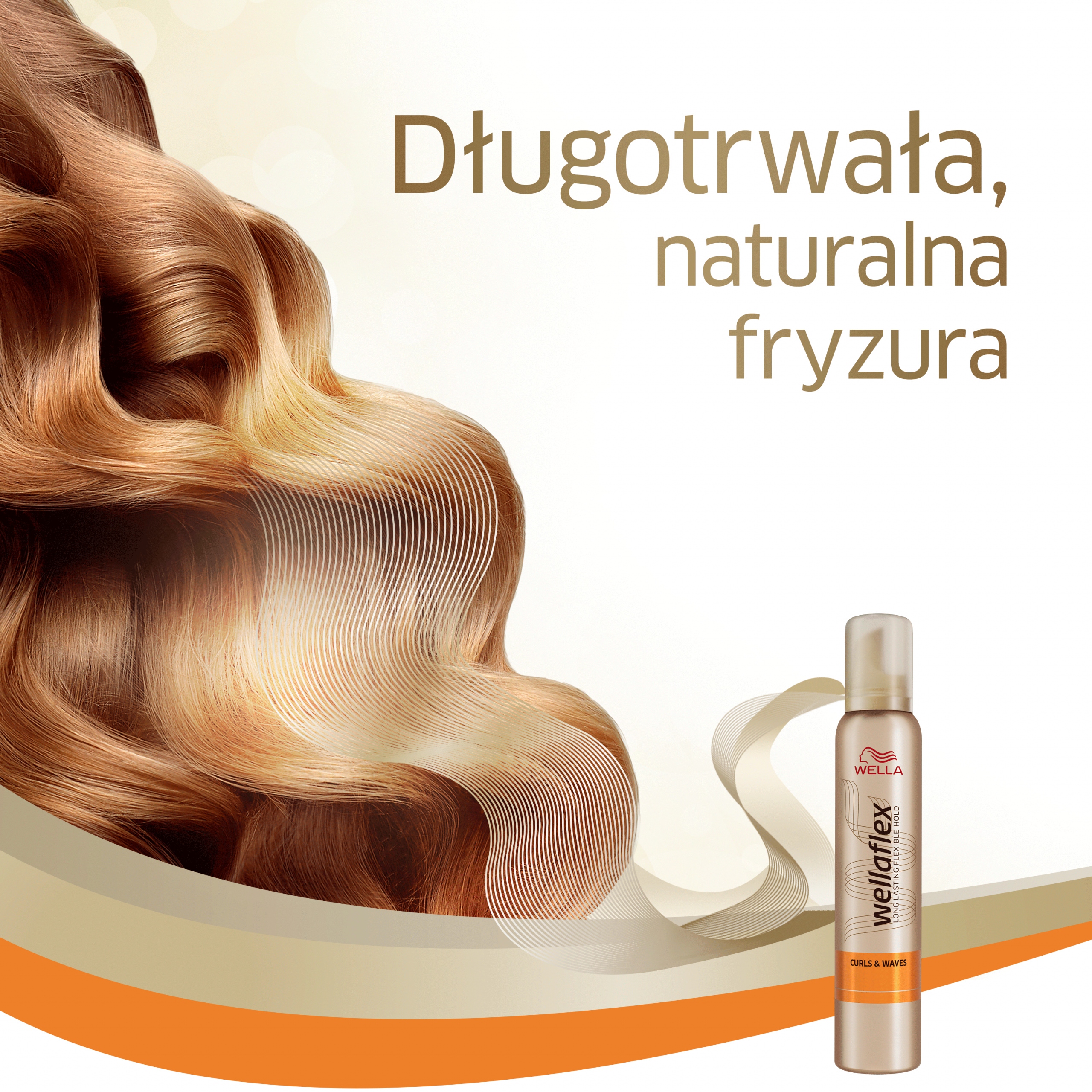 Пінка для волосся Wellaflex Curls&Waves з формулою FlexCurl підкреслює природну красу волосся та надає зачісці індивідуальний характер. Забезпечує довготривалий ефект пружних локонів і хвиль. Крім того, завдяки технології FlexActive фіксуючий мус для волосся забезпечує 3 найбажаніші риси природної та гнучкої зачіски. Закохайтеся в ніжний дотик свого волосся та досягніть ефекту сильної фіксації до 24 годин. Зберігайте свою зачіску гнучкою з повною свободою рухів. Завдяки зручному нанесенню та легкому розчісуванню Wellaflex Curls&Waves — найкращий спосіб швидкого укладання. Це також допомагає захистити волосся від ультрафіолетового випромінювання, надаючи йому природний красивий і здоровий вигляд щодня.Довготривалі пружні локони