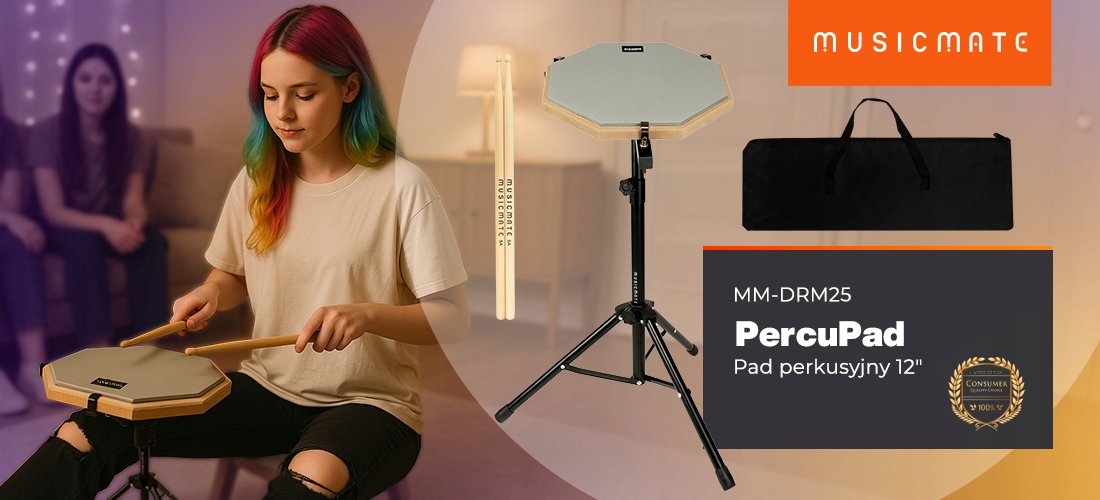 MM-DRM25 PercuPad — це тренувальний планшет діаметром 12 дюймів, який поєднує в собі автентичний досвід гри та зручність тихих тренувань у будь-якому місці. Оснащений стійкою регульованою підставкою, легкою конструкцією та транспортним футляром, він ідеально підходить як для дому, так і для подорожей. Завдяки реалістичному відскоку палиць і амортизаційній поверхні він дозволяє вам розвивати свою техніку, не заважаючи оточуючим. Це практичний інструмент для початківців і більш досвідчених барабанщиків, які хочуть тренуватися без шумових обмежень.