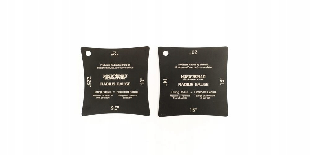 MusicNomad Set Precision Radius Daties Set 2 Pack 2 допоможе вам виміряти дошку та радіус шиї вашої гітари. Він пропонує точні вимірювання, які легко читати завдяки інноваційній чорній обробці на відміну від глибоко подрібнених білих маркувань. Преміум -на нержавіюча сталь з полірованими гладкими краями в поєднанні з лазерними номерами та гарантіями тексту років використання. Унікальна конструкція мюзиклів у чорному покритті полегшує перевірити, чи штрихи струни порівняно з традиційними заходами срібної сталі. Здатність вимірювати радіус дошки та рядків є важливим кроком у процесі регулювання. Точний Nomad Music Radius Gauge Music переповнений функцією та перевагами. Точні вимірювання (7,25 ", 9,5", 10 ", 12", 14 ", 15", 16 ", 20") і легко зробити інструкції щодо лічильника, надаючи впевненість, що ви будете робити свою роботу належним чином. Виготовлений з нержавіючої сталі відповідно до тих же високих стандартів, що і всі продукти MusicNomad.