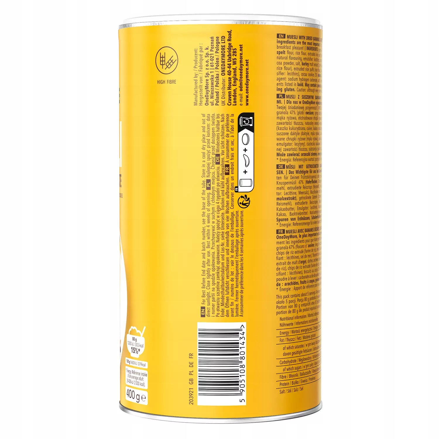 Харчова цінність Muslin 100 поспішає на порцію 80 Energy Felt1600 KJ / 379 KCAL1280 KJ / 303 KCALTłUSZCZ 5,6G4,5GW, включаючи насичені жирні кислоти1,7G1,4GWARLOLS 70,8G56,6GW цукор21,5g17.2gonbellbell цукор21.5g17.2gonbellebel 6,8g5,4gbiałka8g6.4gsól0.6g0,48g
