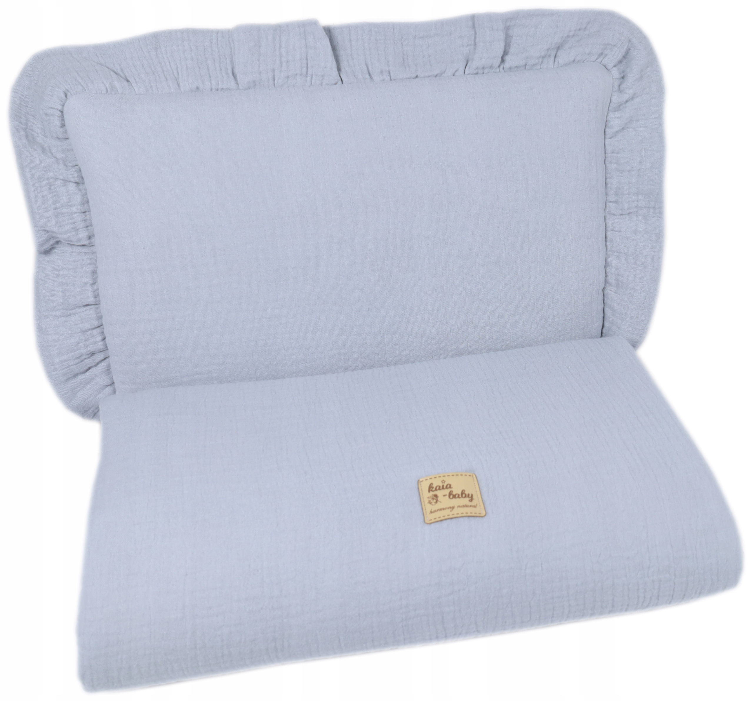 Muslin set consists of a blanket/quilt and pillows with a frill - intended for a bed of an extra bed, Moses basket, gondola trolley