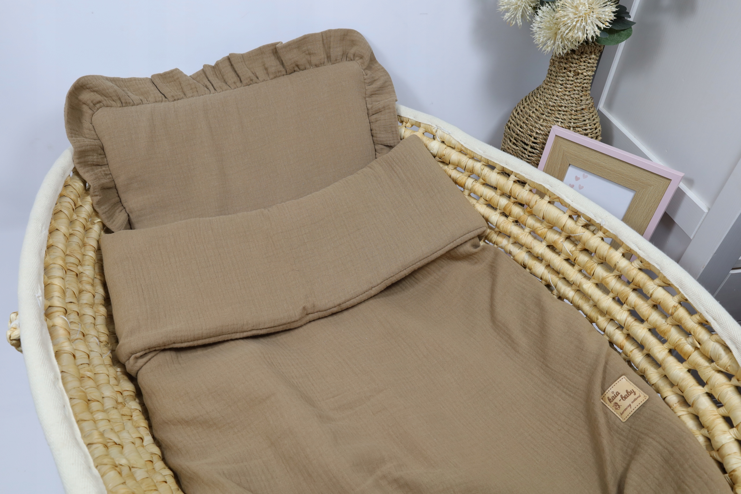 Муслін Встановіть легку ковдру ковдру + подушку з фріллом - кава