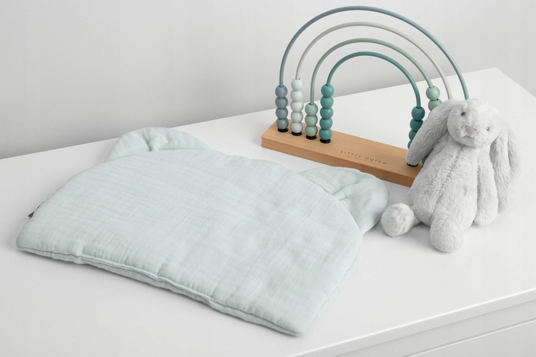 Виготовлена з ніжного мусліну та наповнена антиалергічним силіконовим флізеліном. Ці матеріали не будуть дратувати ніжну шкіру малюка. Подушка плоска, ідеальна навіть для новонароджених.