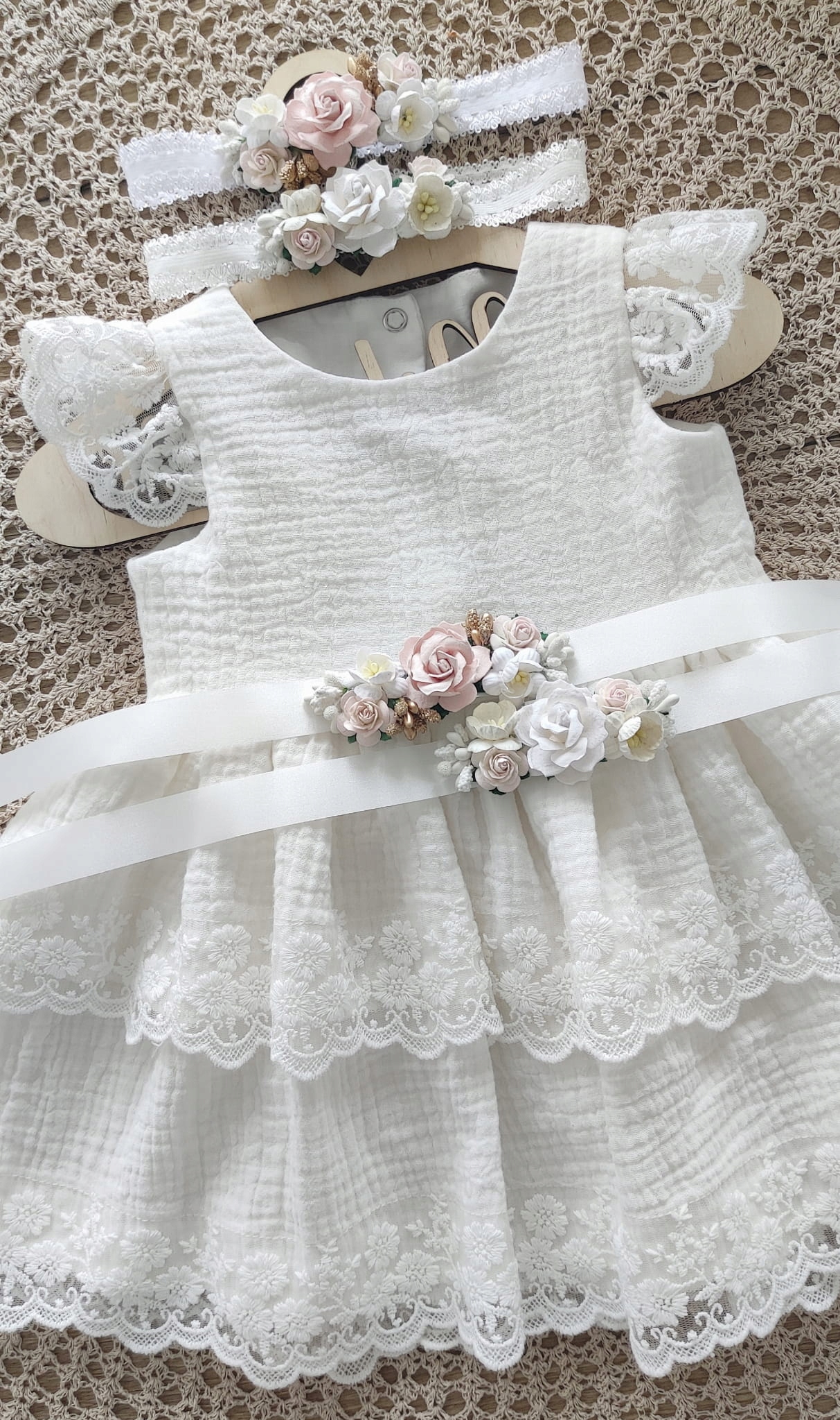 Муслінове хрестильне плаття Blanka світлий екрю 68