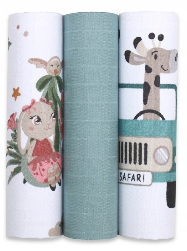 Суперм'які муслінові підгузки є обов'язковим елементом layette - незамінним як у період новонародженості, так і в період немовляти. Муслін - це двошарова тетра з 100% бавовни, що відрізняється надзвичайною легкістю і повітропроникністю. Пелюшки з цього матеріалу можна використовувати з перших днів життя - як сповивання, легку ковдру, сповивалку, простирадло або зручний рушник. Вони ідеально підійдуть як чохол під час грудного вигодовування або як підкладка на плечі батьків, щоб захистити одяг від пролиття. Їх також можна використовувати як м'яку іграшку для сну або легкий чохол на коляску. Вони добре підійдуть у будь-якій ситуації, що вимагає близькості до шкіри дитини. У наборі 3 штуки