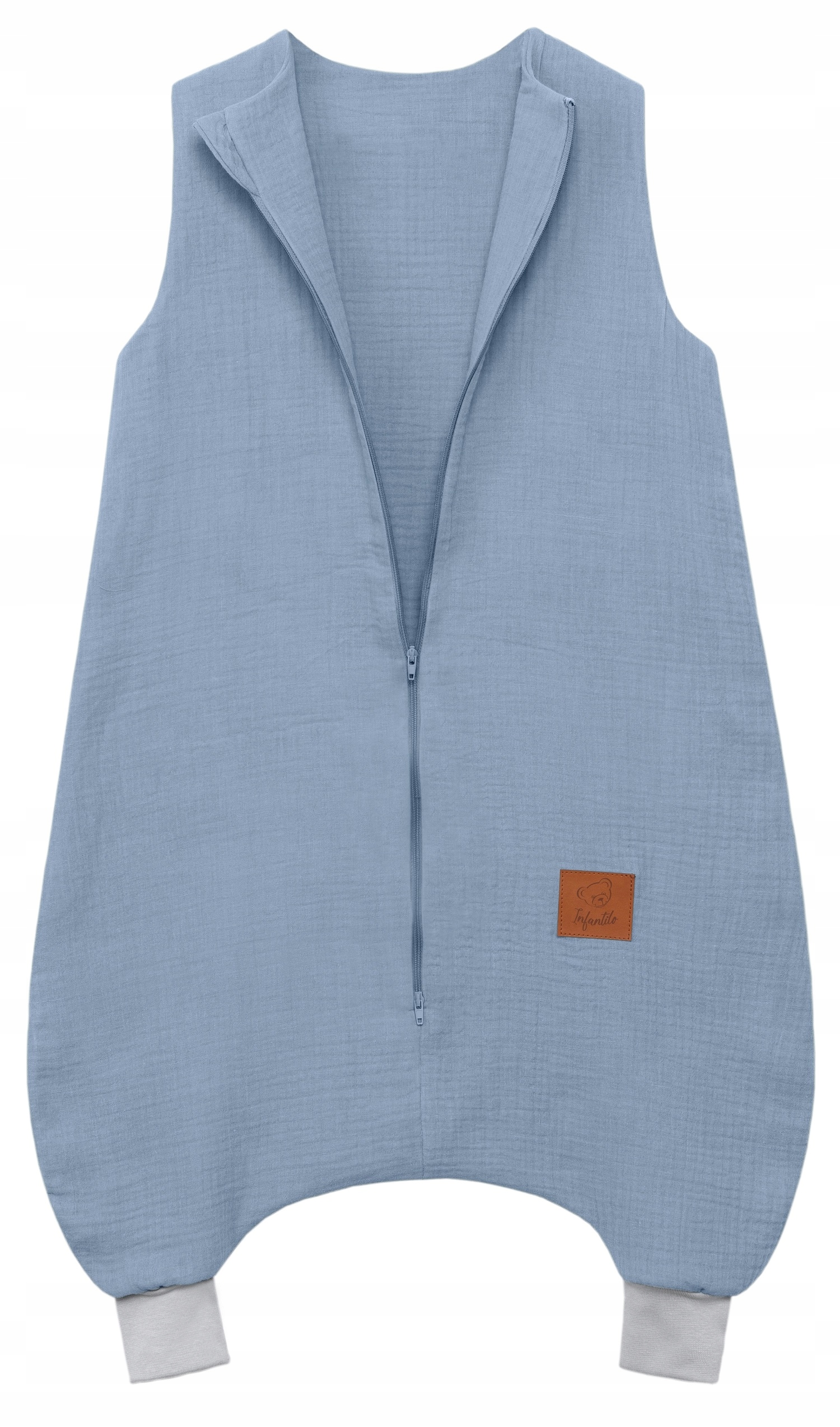 Подвійний муслін - це м'яка та ніжна тканина, яка ідеально підходить для чутливої дитячої шкіри. Спальний мішок оброблений м'якими та еластичними світло-сірими манжетами, які ідеально облягають ніжки дитини.