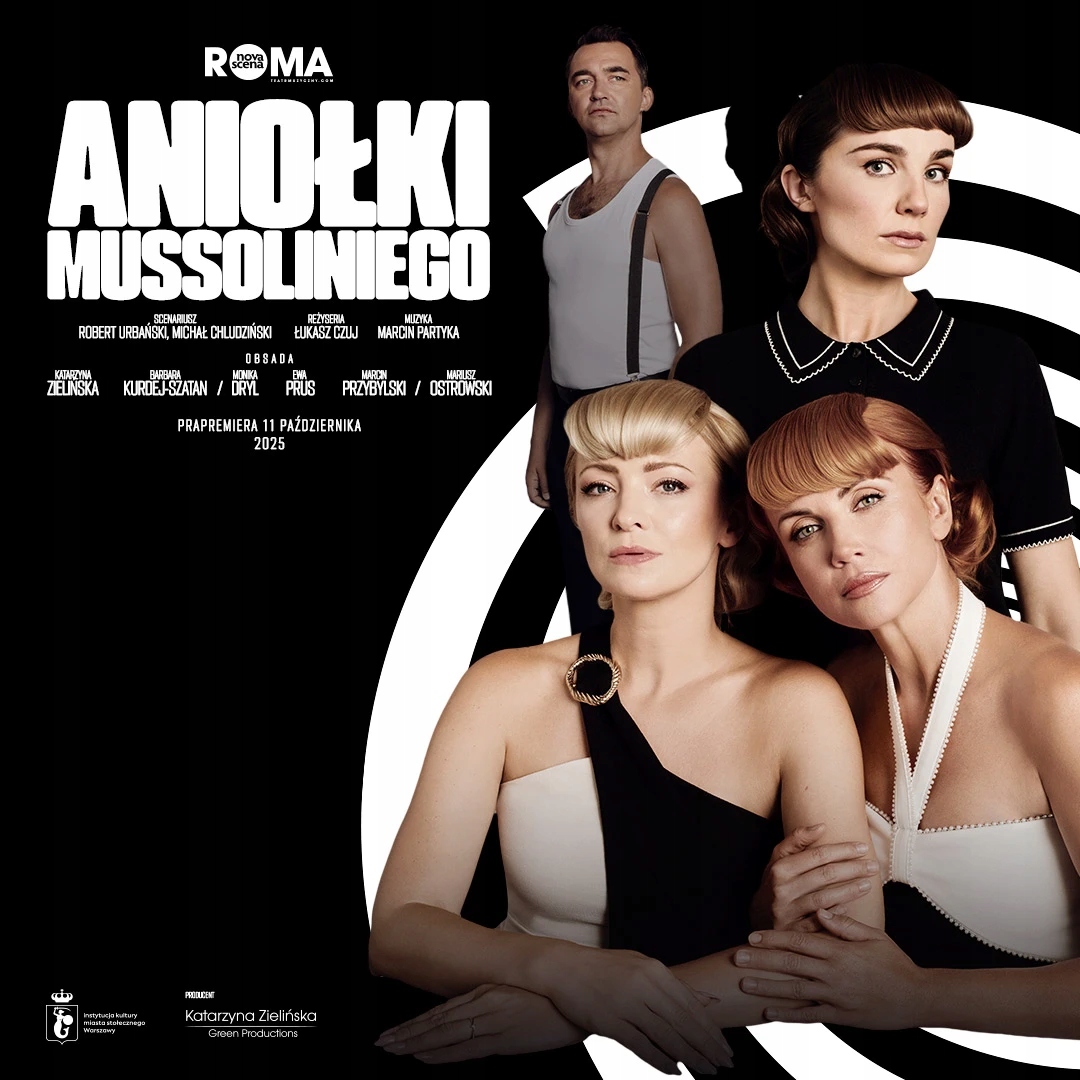 Виступ "Mussolini Angels"-це четверта постановка Катаржини Зієньянської та група її регулярних колег (режисер Лукаш Ремм, композитор Марчіна Партіка, автор пісень Майкл Члудзян, хореографа Поліна Анджевська-Дамікка), виконаний на сцені Рома. Після свердловинних виступів "Берлін Четвертий ранок", "Софія де Магіко" та "Нью -Йорк. Заборона" цього разу творці запрошують нас у подорож до фашистської Італії з межі 1930 -х та 1940 -х років. Квитки на виступ ангела Муссоліні тепер доступні. Мусоліні Ангели в ромському музичному театрі "Ангели Муссоліні" (сценарій Роберта Урбаньського та Міхала Члудзінського) - гротескна музична казка про долю "Тріо Лескано" - найвідомішого італійського вокального тріо 1930 -х та 40 -х років минулого століття. Три сестри Лечан, дочка голландської оперетної співачки єврейського походження та угорського акробата, після дитинства, проведеного в цирку, вони розпочали вражаючу кар'єру в Італії в 1935 році і продовжили її під час найбільшої сили фашизму - незважаючи на їх єврейські корені. Коли їхні співвітчизники та сусіди зникли, експортовані до нацистських концтаборів, вони розважали свій спів від Дюса. Після війни вони намагалися створити легенду про арешт та переслідування фашистською владою. Історія "Тріо Лескано" - це казка про джаз і розгойдування про нестримне бажання слави, про ціну, яку вам доведеться заплатити за справу з владою. Це також зворушлива сімейна драма та авантюрна історія, в якій сестри Лескан зустрічаються з ключових персонажів з історії Італії з цих років. У цій музичній та драматичній історії ми побачимо чудові актриси: Катаржина Зієньянська, Ева Прус, Барбара Курдей-Сатан/ Моніка Діл та Марцин Пізбілскі/ Маріус Островський виступають з ними. Квартет акторів буде супроводжуватися жвавим музичним гуртом, який грає в прямому ефірі. Музичний матеріал - Частка, складена та влаштована Марцином, буде складатися з пісень "Тріо Лескано" та музики та музичних тем, написаних для виступу.