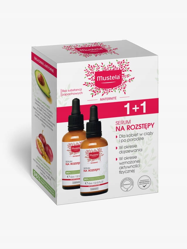Mustela Maternite Сироватка для від розтяжок - це спеціальний продукт, призначений для вагітних жінок і молодих мам. Завдяки унікальній формулі, що містить масло маракуйї, сироватка ефективно впливає на нові розтяжки, покращуючи їх зовнішній вигляд і сприяючи регенерації шкіри. Завдяки високому вмісту натуральних компонентів це безпечний вибір для майбутніх мам. При регулярному використанні сироватки можна помітити ефект вже через 8 тижнів, що робить її незамінним елементом догляду під час вагітності.