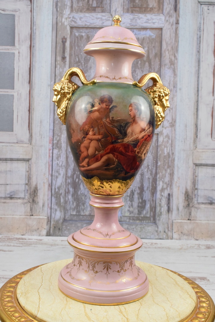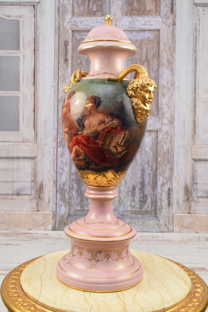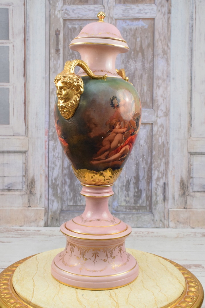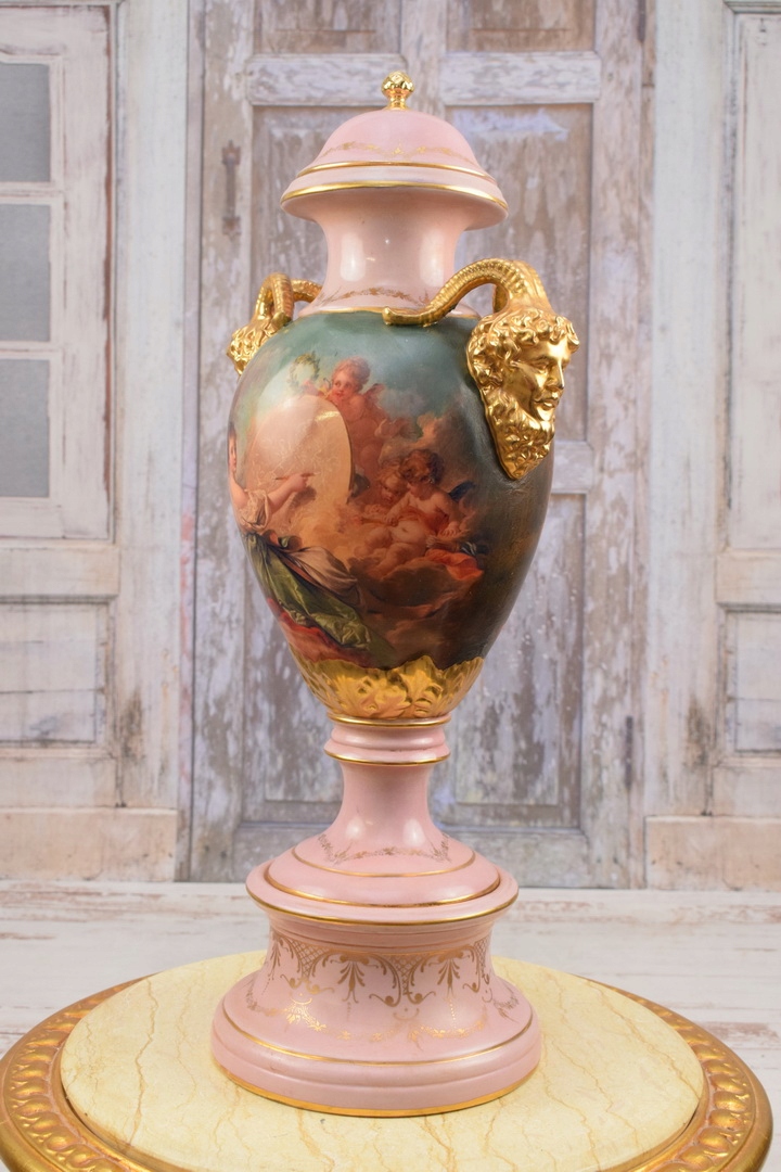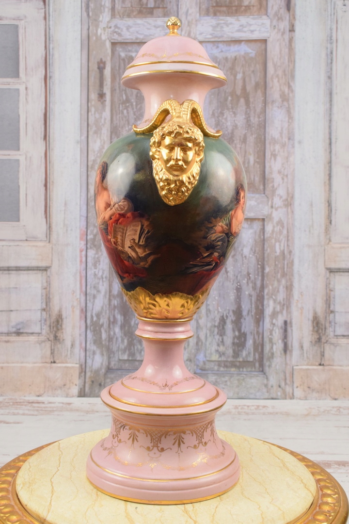 Музейна розписна порцелянова ваза - Ваза - позолочена розписна амфорна чаша