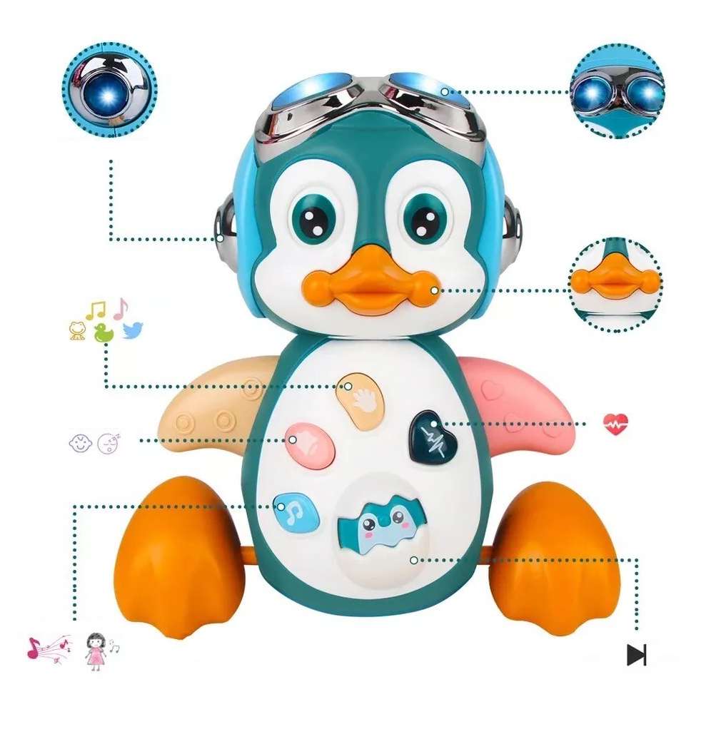 🐧🐧 2 режими для ще більшого задоволення: "PLAY MUSIC MODE" привертає увагу малюка спалахом і веселою музикою. «GO MODE» заохочує дітей вивчати погоню та ритм. Погоня за пінгвіном, подарунки для однорічних хлопчиків, навчання малюка повзати та ходити, вивчати музику та ритм, вчити елементарним рухам під час гри.