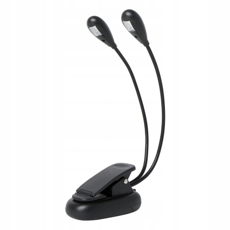 Якісний нотний світильник. Оснащений двома гнучкими регульованими кронштейнами та затискачем для кріплення. Кожна рука оснащена двома світлодіодами. Кожен світлодіод можна ввімкнути окремо, що дає нам велику гнучкість у налаштуванні інтенсивності освітлення.