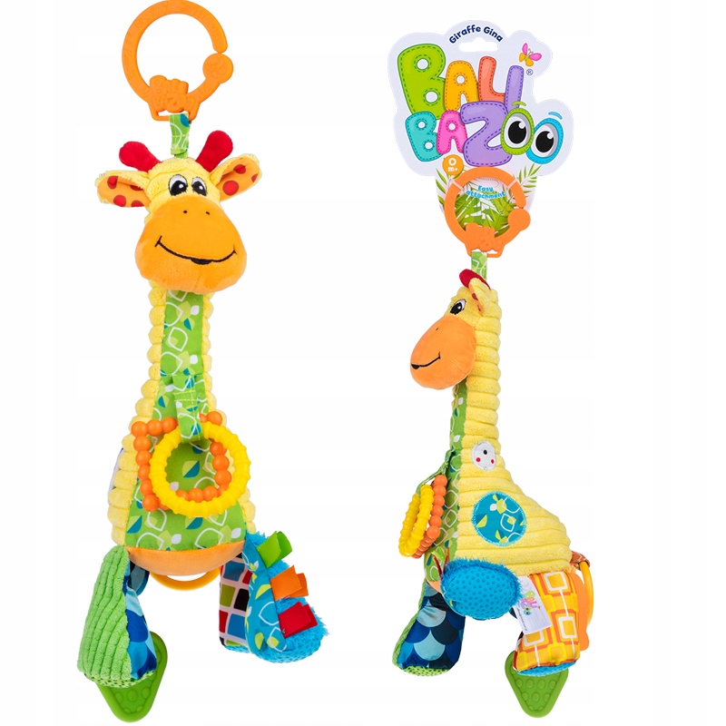 - Іграшка також має зручну, багатофункціональну кільцеву кліпсу, яку можна легко прикріпити до коляски, дитячої коляски або ліжечка. Жирафа також можна успішно використовувати як окрему іграшку