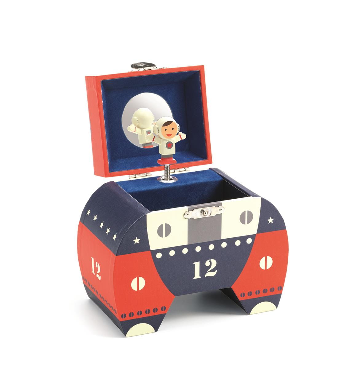 Дерев'яна шкатулка з музичною скринькою - музична скринька з гарним дизайном у формі космічного корабля. Зверху зображено POLO 12, всередині дзеркало та фігурка КОСМОНАВТА, яка крутиться і грає мелодію. Музична скринька включається при відкритті кришки. Гарна прикраса для дитячої кімнати. Мелодія музичної скриньки: Альберт фон Тільцер «Take me out the Ball game».
