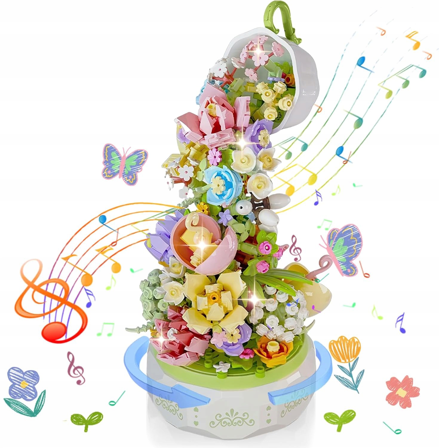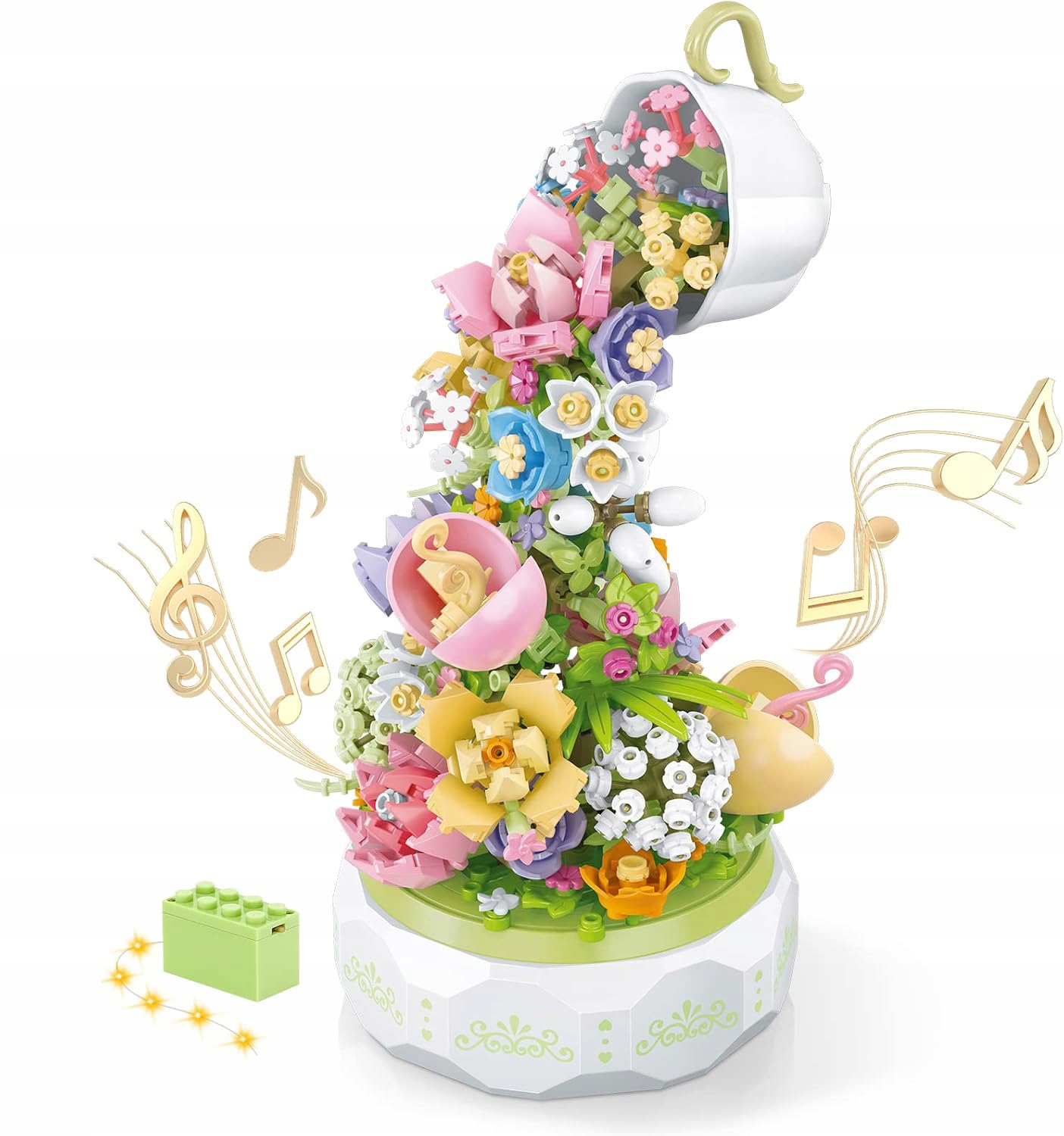 Світлодіодні ліхтарі освітлюватимуть ваш квітковий блок у темряві та зроблять ваші моделі чарівною прикрасою столу. Будуйте, грайте, обертайте та слухайте. Ідеальні іграшки для творчих ігор або як прикраса.