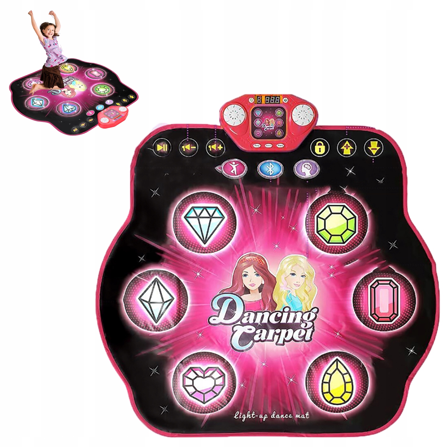 - Танцювальний килимок включає 27 рівні (3 рівні складності, кожен 9 рівнів кожен ) та 5 режими гри (безкоштовний танець/виклик для 4 клавіш/виклик на 6 клавішах/режим Bluetooth/memory).