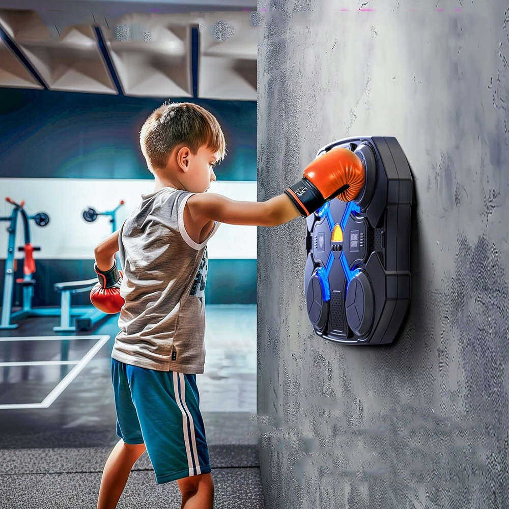 Smart Smart Music Boxing Machine з оновленими динаміками. Коли пристрій потрапляє в ціль, він випромінює музичні та світлові ефекти та покращує візуальні враження за допомогою світлодіодних світлових ефектів. Підтримує з’єднання Bluetooth, не лише музична скринька також може бути стереосистемою, ви можете одночасно тренувати бокс і перемикатися на улюблені пісні, але це може забезпечити найкращий аудіовізуальний ефект із найкращих тренувань.