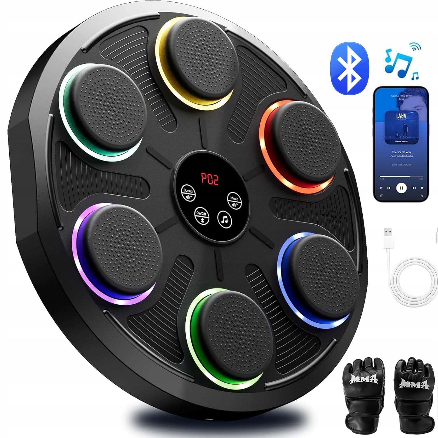 - Підтримка з’єднання Bluetooth, щоб ви могли вибирати улюблені пісні під час тренування з боксу, а також має класне освітлення, щоб занурити вас у тренування.