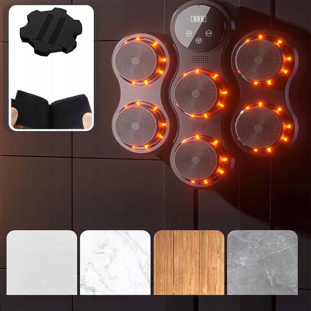 Цей музичний боксерський тренажер оснащено 9 режимами для досягнення більшості тренувальних цілей, досягнення комплексного тренування м’язів і покращення реакційних здібностей і координації тіла. Коли боксерська мішень засвітиться, вказуючи на початок удару, відлік почнеться автоматично. Ця машина для музичного боксу має стильний дизайн і гладку поверхню, яку легко чистити.