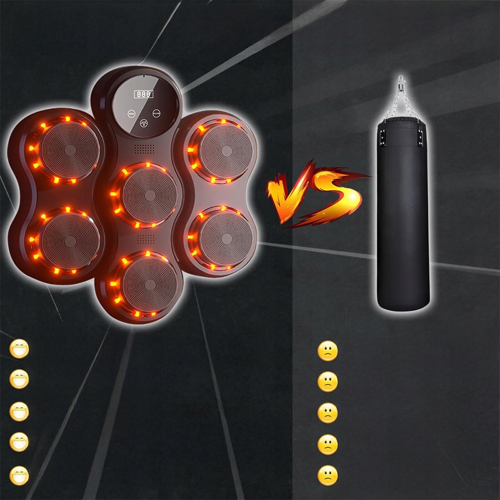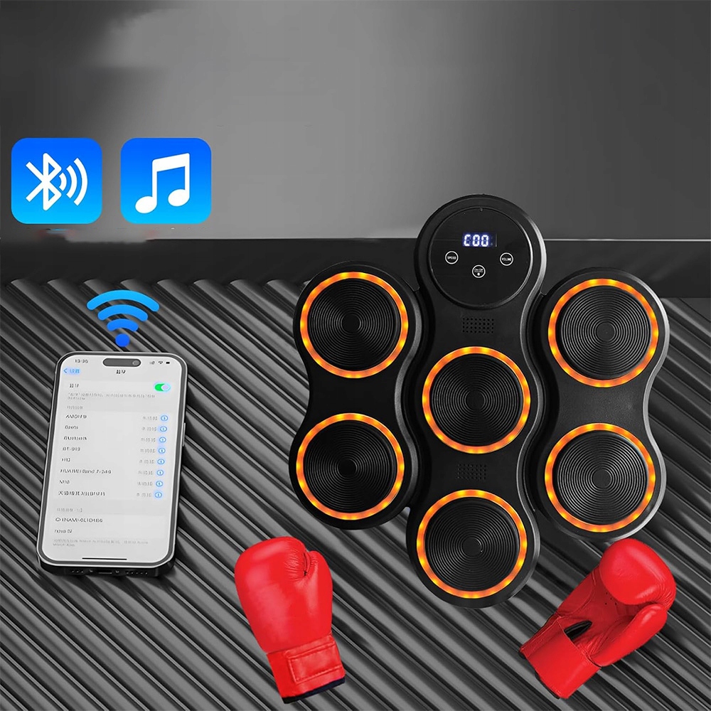 Ця інтелектуальна музична боксерська машина оснащена миготливими світлодіодними точками удару, призначеними для покращення гнучкості тіла та координації та підвищення здатності реакції. Ви можете взаємодіяти з боксерською машиною за допомогою сенсорного екрану; випромінює ритмічне світло і музику; може відтворювати улюблену спортивну музику у фоновому режимі через з’єднання Bluetooth.