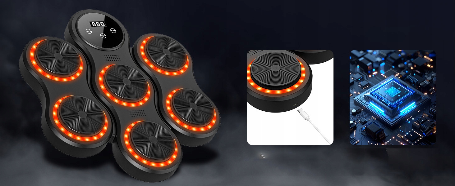 - ✔️ Завдяки блимаючим світлодіодним індикаторам ударів і відтворенню музики через Bluetooth, він розроблений для покращення гнучкості тіла, координації та здатності реакції.